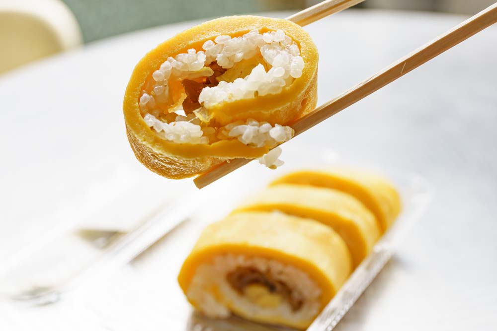 玉子で巻かれたお寿司に、ごぼうや人参の入った魚のすり身。手軽に食べられる田野駅屋の人気商品です。