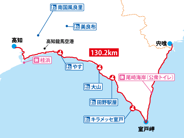 | 室戸岬町 | Murotomisaki | 24km > 尾崎海岸 公衆トイレ | ||||