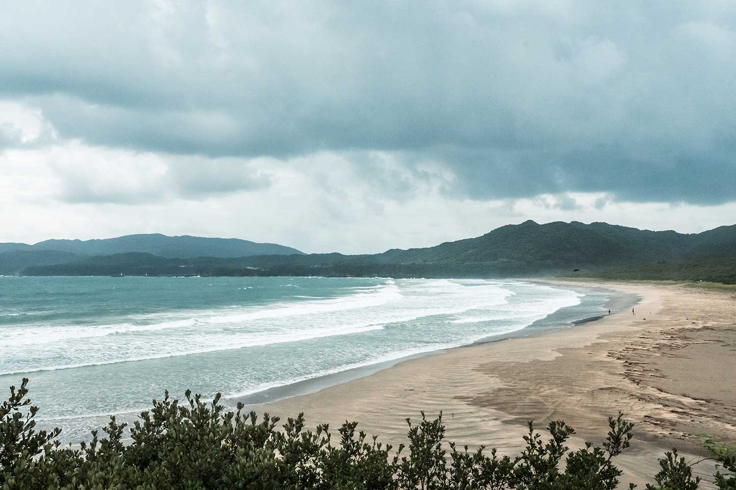 大岐の浜展望所からの眺め、広い砂浜が広がっていた