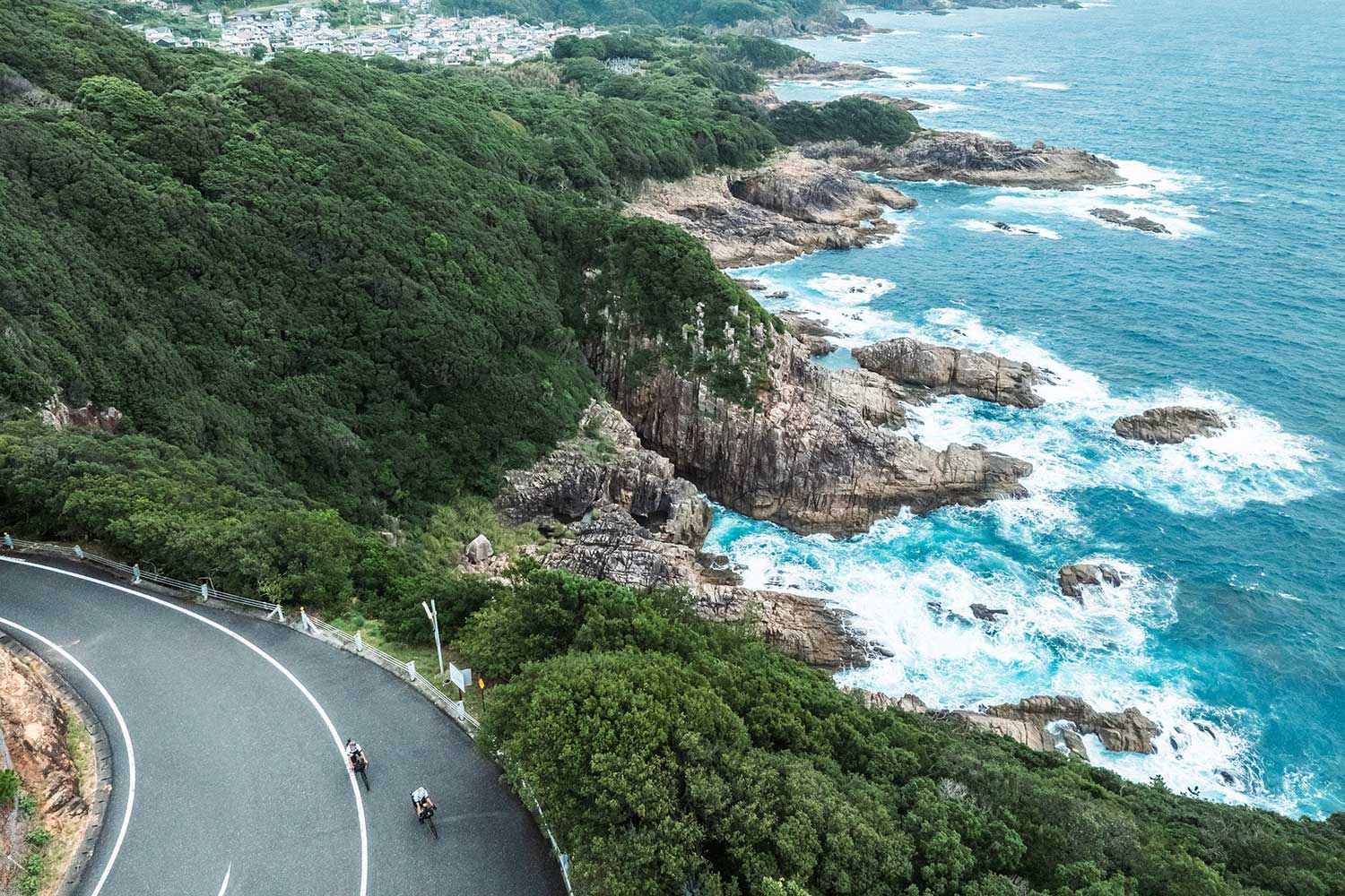 岬にたどり着くと、絶壁の上に立つ展望台から壮大な光景が広がっていた。岩に砕ける波が白い模様を描き、太平洋の果てしなさを感じさせる。白山洞門では自然の力が穿った巨大な岩穴に圧倒され、松尾漁港の「海老洞」では、自転車でなければ辿り着けないような細道を進んだ。その先に広がる静かな入り江は、まさに“旅してきた者”だけが見られる景色だった。